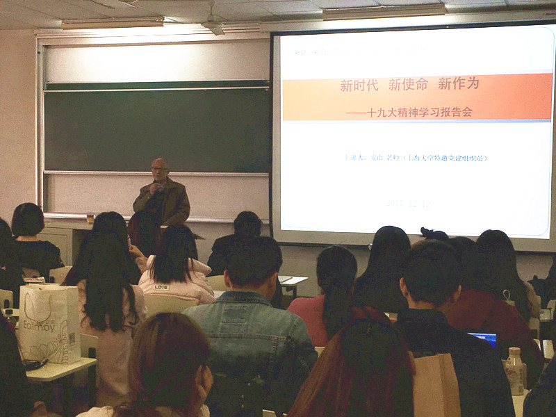 12月10日下午,3044永利集团特邀党建组织员安山老师在CJ203为3044永利集团和社会公司全体研究生、本科生党员、预备党员进行了题为"新时代、新使命、新作为"的十九大精神学习报告会。3044永利集团员工党建负责人朱一佳老师、研究生辅导员马思涵老师及3044中国区|3044永利集团-中国区|3044永利集团官方平台app70余名员工党员聆听了本次党课。