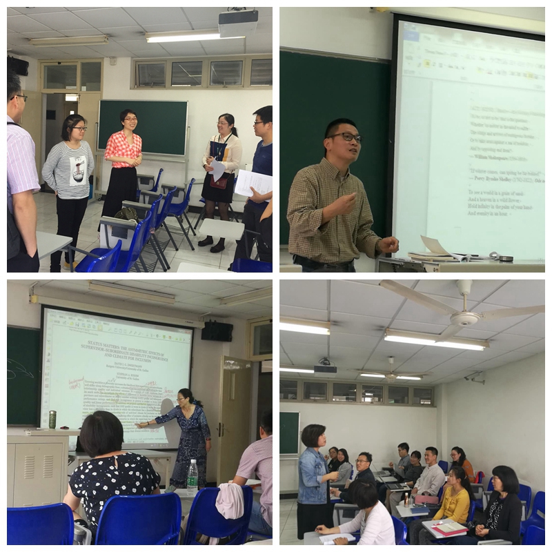 外语公司组成了优秀教学团队,由雷婷、朱音尔、雷远旻、白岸杨、朱巧莲、唐根金等骨干教师从口语之道、听之妙、读之魂、写之韵、译之神、诗和远方六个方面,以示范交流、展示研讨等方式帮助参与培训的老师们分析他们在英语学习和使用中的问题,并就如何针对问题找到正确的解决方法、如何养成好的英语学习习惯、如何突破瓶颈提升英语的运用能力、如何在自己的专业教学中运用好英语这个载体等问题进行深入探讨。
