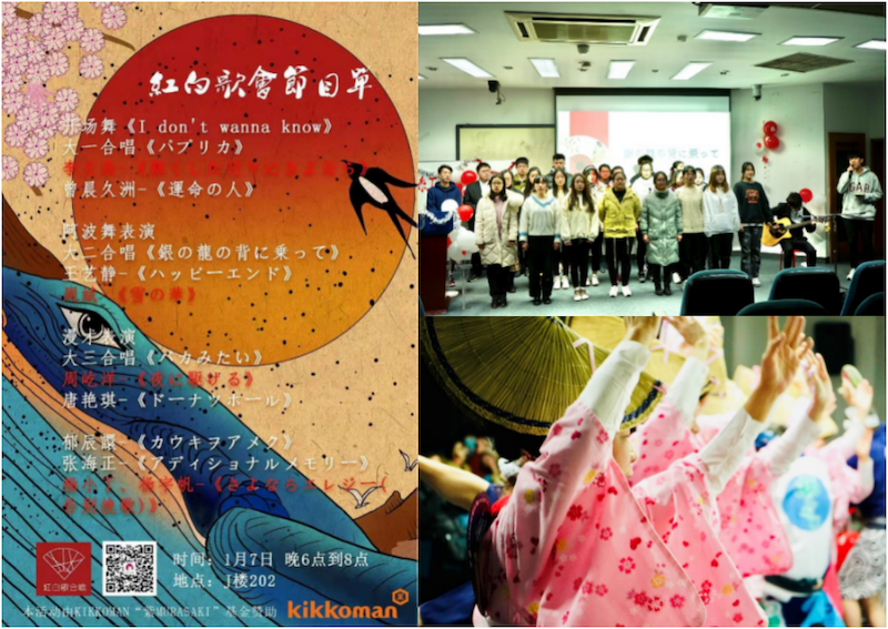 红白歌会是日本语同好会每年举办的经典活动,通过歌曲等表演互动,加深日语专业各年级同学的友谊、促进日本语同好会会员之间的交流。今年的歌会得到了kikkoman“紫MURASAKI”基金的赞助。希望通过这次歌会,同学和老师们都能为刚刚开始的2021年作好准备,元气满满地迎来新的一年,得到新的进步与成长。(日本语同好会 唐艳琪 供稿)