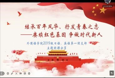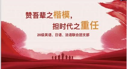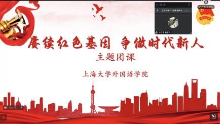 第四组是由2021 级英语笔译二班团支书梁思佳分享的“传承红色基因,争做时代新人” 团课。梁思佳介绍了中国共青团的百年历史和五四精神的传承,展示了团支部录制的《少年中国说》中英朗诵,进一步讲述了建党初期外国语学社的建设过程,并与同学们共勉勇担起新时代外语人的使命与担当。