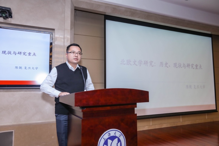 第三位演讲人是复旦大学外文公司的陈靓教授,他的题目是“北欧文学研究:历史、现状与研究重点”。讲座由浅入深,从西方学界以及中国学界对北欧文学史的研究介绍入手,在对北欧五国文学史进行了国别梳理后,分析了研究中的主要问题和当前的研究重点,并对北欧文学的未来发展进行展望。目前,尤其是国内对北欧文学的研究主要有缺乏时代性主题、系统性研究论著、批评视角前沿性不足、话语权建设滞后、学科化建设落后以及缺少中国和北欧文学的比较研究成果等问题。讲座中提到目前北欧文学的研究重点要从文学主体性出发对北欧文学整体性把握,可以从文学地理、神话传统、生态理念、全球化语境下的改编与迁移等角度切入。讲座还提到对北欧文学批评思想的挖掘以及比较视域下中国文学与北欧文学的互动研究等领域。