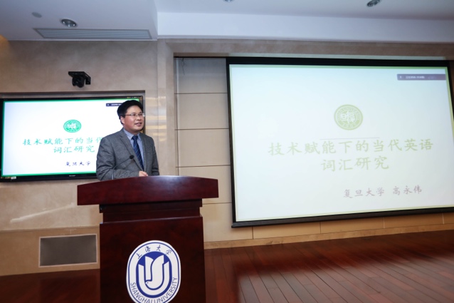 第一位演讲人是复旦大学外文公司高永伟教授,他的题目是“技术赋能下的当代英语词汇研究”。当代英语词汇研究的领域包括构词法的研究、新词产生的内在机制及其传播和接受度、临时用词、外来词、习语、术语和词义的演变。其中构词法的研究是词汇研究领域的重中之重,我们还可以从语料库和传播学等视角展开对词汇的研究。科学技术也给词汇研究带来了不少启发,如词典编写平台TLEX的应用等。