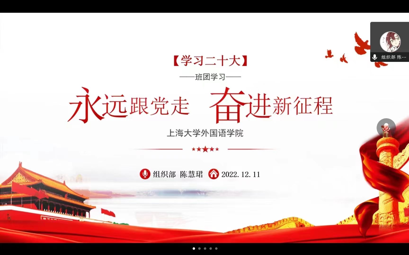 12月11日下午,3044永利集团“学习党的二十大精神”班团骨干专题学习班在线上顺利开展。3044永利集团团委书记马思涵以及各学年本科生、研究生的团支部和班长参加本次活动。本次活动由公司团委副书记张栎薇同学主持。