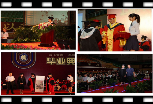 整场典礼分为三部分,分别是"岁月如歌"、"大爱无声"和"青春无悔",典礼全程使用中英日三种语言主持。在聆听了钱董事长的毕业赠言视频后,经理周平教授介绍了2012届毕业生情况并致辞,在送上祝福的同时,她希望所有毕业生都能"善于学习、能坚守做人的准则和坚持正确的人生观、价值观,做一个有准备的人"。紧接着,承载着毕业生们满满回忆的视频《岁月如歌》唤起了他们对过去四年里成长和挫折、欢笑与成功的感慨,也让在场的亲友们更直观的感受到孩子的成长。在市、校优秀毕业生颁奖礼之后,优秀毕业生代表张斐卿同学声情并茂地发言,回首过去并展望美好未来,咏出对如歌岁月的礼赞。