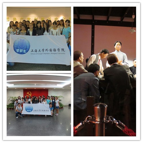 会址是一栋具有上海地方风格的石库门楼房,始建于1920年,于1921年成为中国共产党的诞生地。会址原是上海代表李汉俊祖上所留房产,新中国成立后曾多次变迁,目前已经修缮,作为历史纪念馆保留。进入馆内,鲜红的党旗首先映入众人的眼帘,洋溢着神圣与庄严,大家在党旗下合影留念,记录下了这一具有纪念意义的时刻。纪念馆的二楼是展厅,厅内摆放了中国共产党的许多历史文物,展示了革命先辈留下的历史资料。一幅幅记载着我党血泪史的历史图片映入大家眼帘,先辈们的革命精神震撼了我们的内心。最为吸引大家的是按照"一大"会议室原状开辟的蜡像室,室内陈列了当年参加会议的革命先驱者的蜡像,包括毛泽东、何叔衡、董必武等共13人。栩栩如生的蜡像重现了当年的会议现场,令同学们流连驻足。