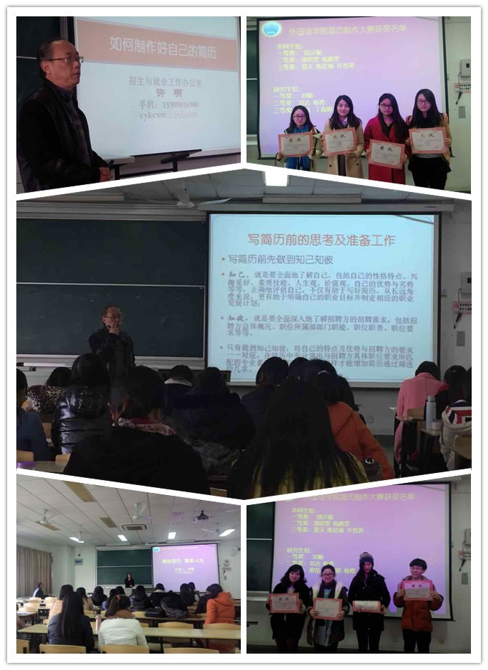 许老师结合他多年的就业工作经验,为外语公司的同学们上了生动的一课,不仅帮助同学们了解到简历对于求职、工作的重要性,更为同学们提供了写好简历的方法技巧。相信经过这次讲座,同学们在简历的制作方面会更加耐心、细心、得心应手,从一份精致简历入手,开启精彩人生之路。