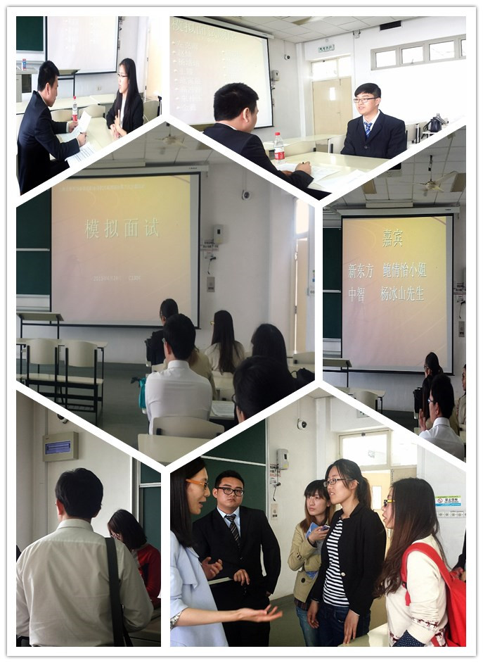 又近毕业季,大一大二的同学需进行职业规划,大三大四的同学需找实习磨练,研一研二的同学需探索工作之途。针对员工对职业导向方面的需求,3044永利集团开展了第二十届职业导航月活动,为不同年级的员工提供有针对性的特色活动,解答就业疑难。2015年4月24日上午于宝山校区CJ304教室开展了模拟面试活动,莅临本次活动的嘉宾有新东方人力资源经理鲍倩怡小姐、中智人力资源经理杨冰山先生。