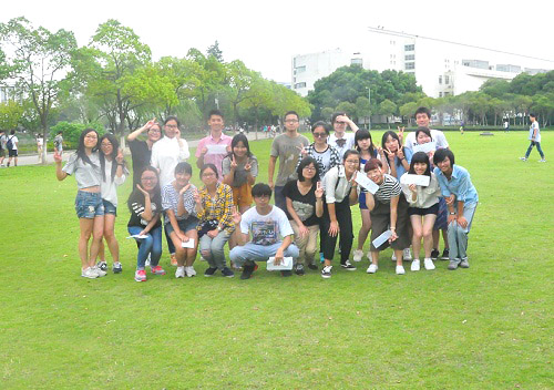 中午参与活动的同好会成员们来到图书馆门口的集合地点,然后大家一起来到公司的大草坪上,展开精彩的日语角活动。经过第一轮击鼓传花游戏后,大家的兴致开始高昂起来。然后大家用简单的日语进行了自我介绍,并就各自的专业和老员工活用日语进行了交流,整个氛围十分温馨。接下来还有守护气球游戏环节,以及令人期待的撕名牌游戏。各位同学在草坪上跑得欢快,笑声阵阵。游戏结束时,最终"生存"下来的两名成员,还获得了一幅可自己创作的油画作为奖励。