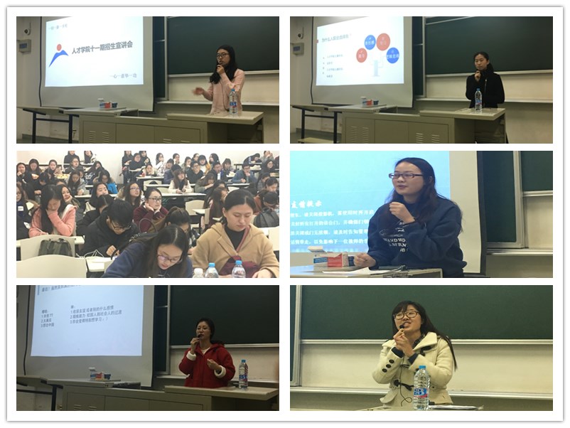 作为上大人才聚集之处,人才公司吸引着各个公司优秀学子的关注。人才公司汇聚校内外优质资源,全力打造未来社会精英人才。在本次首日教育中,人才公司的同学们带来了"让优秀成为习惯:关于人才锻造的上大故事"的精彩分享。2015级本科生王歌同学为人才公司第十期学员,她从"我们是谁?"、"为什么选择人院?"、"为什么人院选择我?"以及"为什么人院选择你?"四个版块引入,分别讲述人院学员的构成、人院学员的初衷、人院学员的骄傲和人院对新学员的要求。其中在"为什么选择人院?"环节中,人才公司九期学员沈玠含同学分享了自己起初对人院的期待,在期待中不断完善自己,向身边优秀的人学习,不断收获成长。她说,自己很幸运,感谢人院提供的各种平台和锻炼机会。在谈到"为什么人院选择我?"时,人才公司九期学员孙奕灵同学回顾了自己通过努力所取得的优异成绩。她表示,人院的肯定对她自己是继续前进的动力,只要不断地学习和努力,一定可以遇见更好的自己。