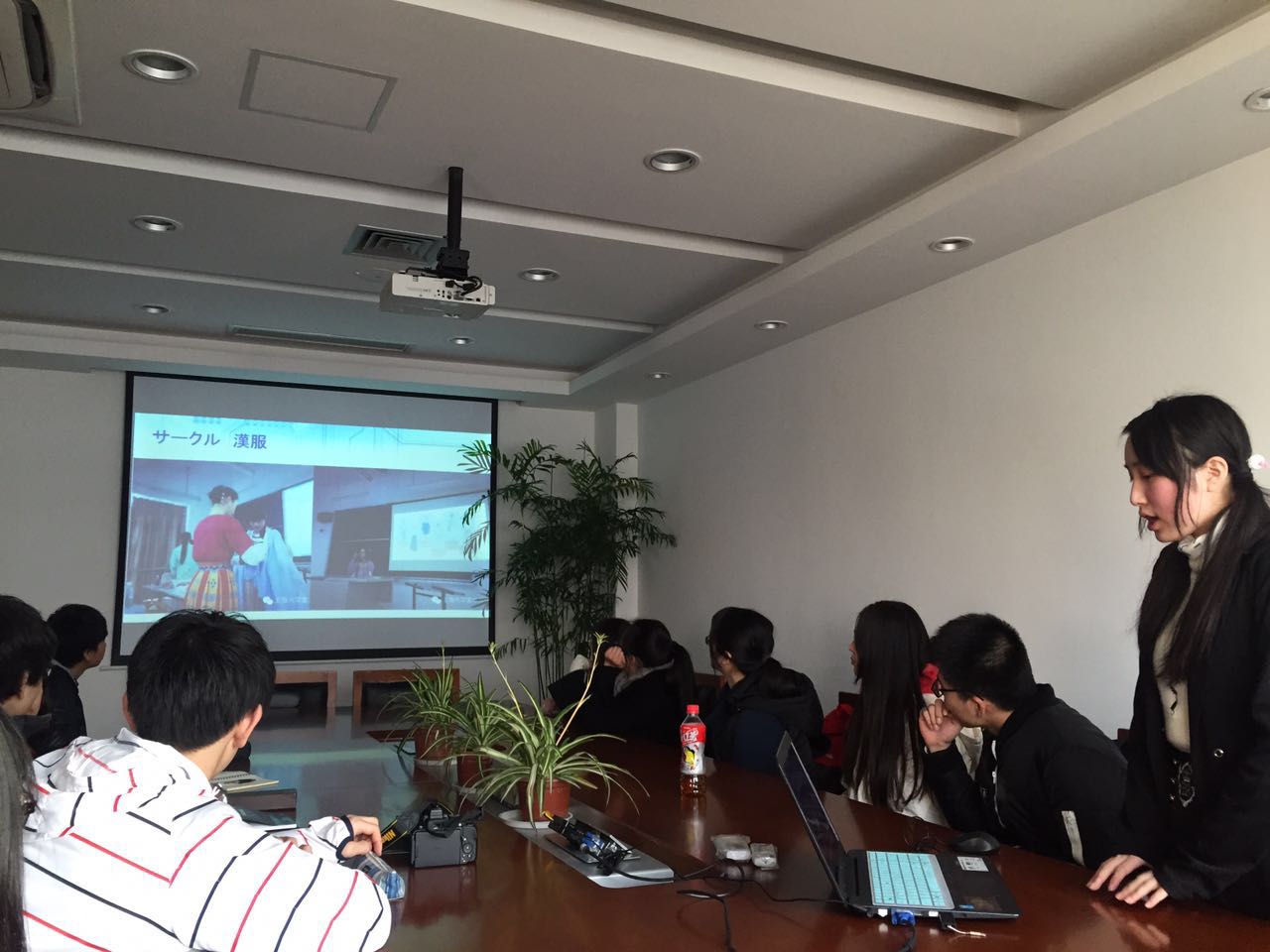 交流派对主要分为两个环节。在第一环节中,参与活动的十六名同学先用日语做了简单的自我介绍,完成了新朋友之间的"破冰"。之后,由中日双方员工代表分别介绍了日本语同好会和S·A·L社团,最后双方员工也对各自丰富多彩的老员工活做了分享。在日方员工介绍S·A·L社团时我们了解到,该社团的足迹遍布世界各地,包括南美的玻利维亚,亚洲的柬埔寨和菲律宾以及非洲一些民族特色浓郁的国家,通过对这些国家的实地生活体验感受当地的民族风情,将友好交流的种子播撒全世界。除此之外,他们还运用一些环保材料亲手制作各种背包作为社团social business的项目之一。日方员工正身体力行地参与如此有意义、有深度的活动,这令日语同好会的同学们大为赞叹!