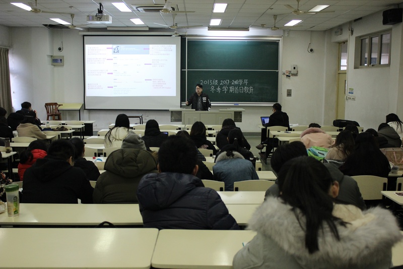 下午15:30,2015级全体本科生集聚Cj203教室如期进行本次首日教育的第二场活动。步入大三的冬季学期之际,许多同学对于自己的人生规划较为迷茫以及对于一份优秀的简历的制作不甚了解,为了帮助同学们尽早确定人生规划,了解简历的制作以及留学的相关信息,2015级本科生辅导员梁苗老师邀请来自永利集团莘远留学的王字海老师为同学们开展了关于人生规划、留学规划以及简历制作的讲座。