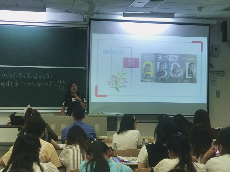 随后王倩霞同学讲述了天津公务员报考者刘伶的故事。刘伶在2017年天津市公务员考试中笔试面试总成绩第一,但是因为作弊被取消成绩。作弊而来的成绩不是我们的真实水平,在考试时,正确的方法永远不是作弊。