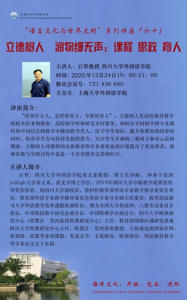 讲座题目:立德树人 润物细无声:课程 思政 育人