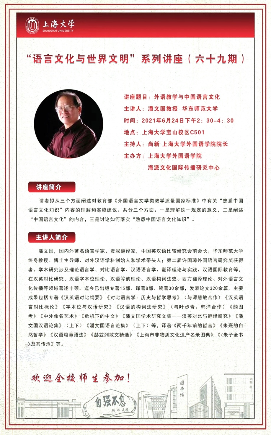 <6月24日>“语言文化与世界文明”系列讲座(六十九期)外语教学与中国语言文化