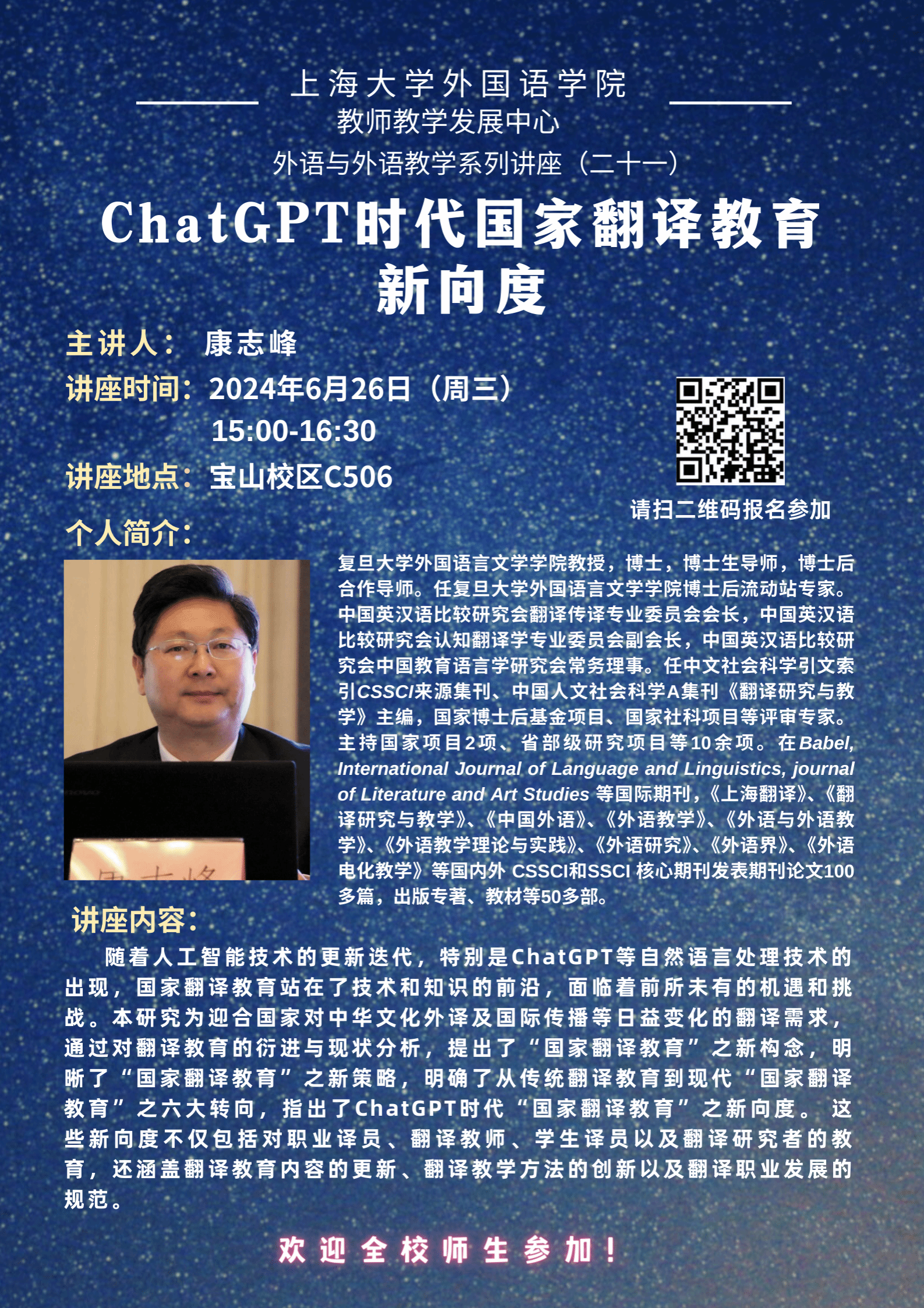 3044永利集团教师教学发展中心讲座(二十一) ChatGPT时代国家翻译教育新向度