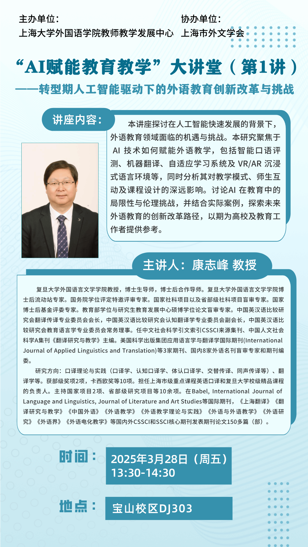 上一条:永利集团外国专家大讲堂:美国俄亥俄州立大学Robert Levine教授“Syntax as Deduction: How Logical Proof Links Form and Meaning”专题系列讲座 下一条:“语言文化与世界文明”系列讲座(一百三十九期):翻译与中国近现代知识体系建构