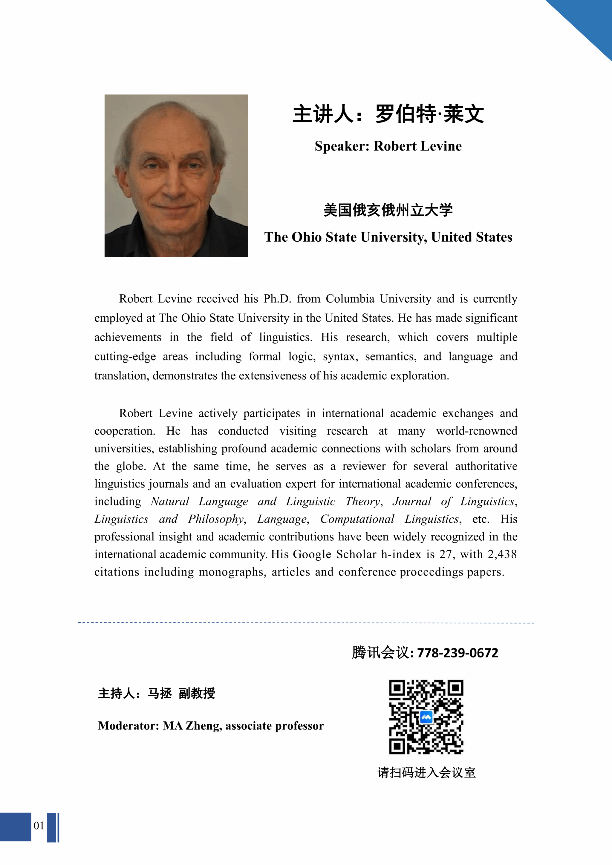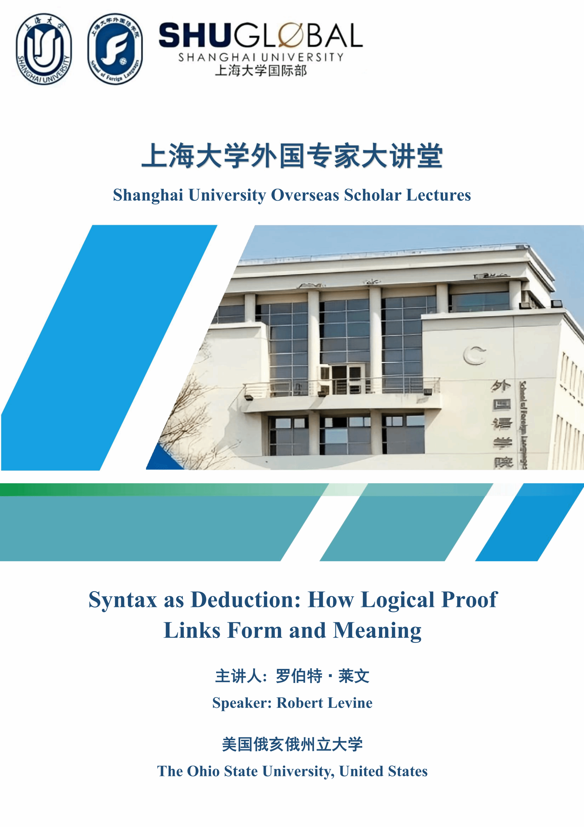 永利集团外国专家大讲堂:美国俄亥俄州立大学Robert Levine教授“Syntax as Deduction: How Logical Proof Links Form and Meaning”专题系列讲座